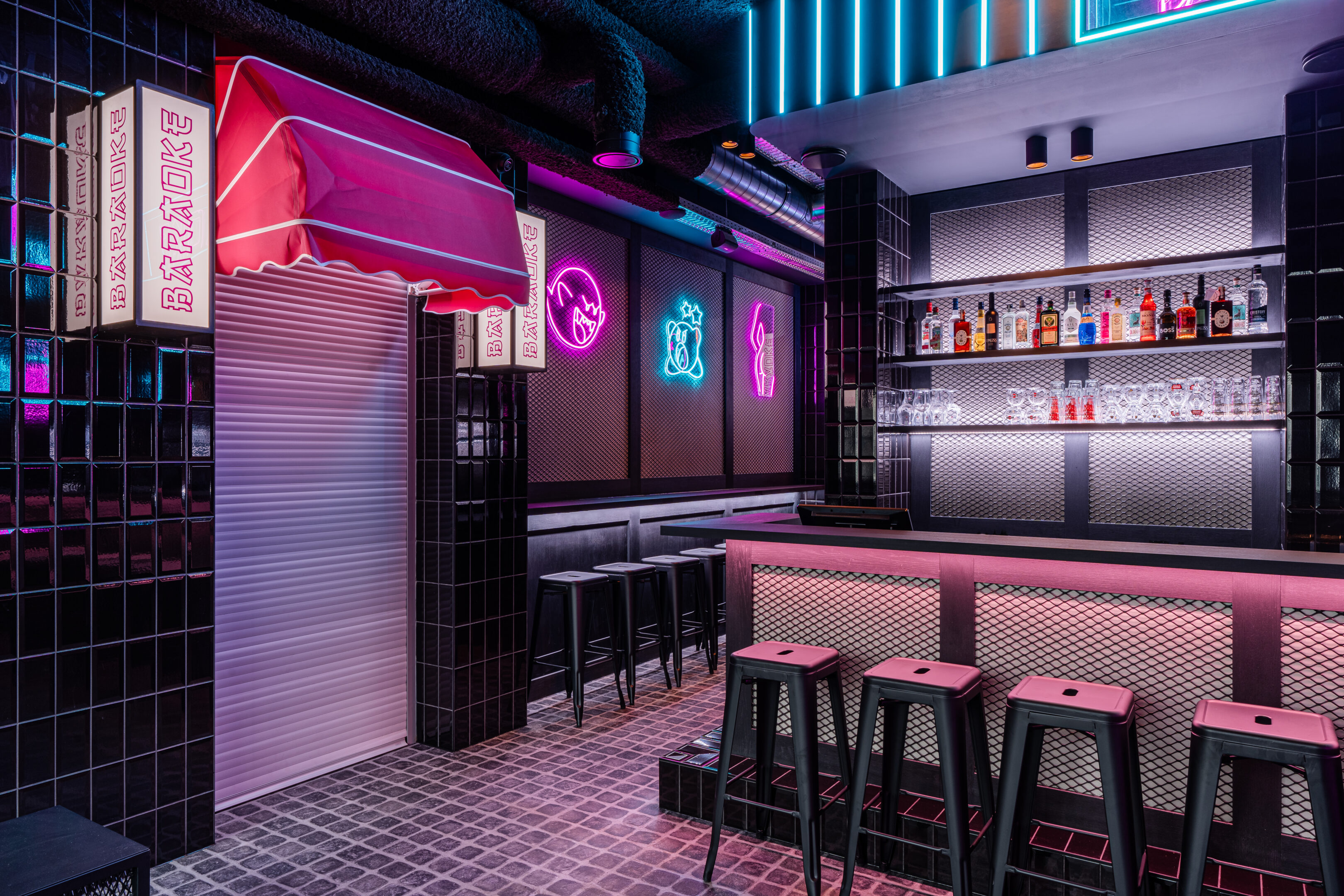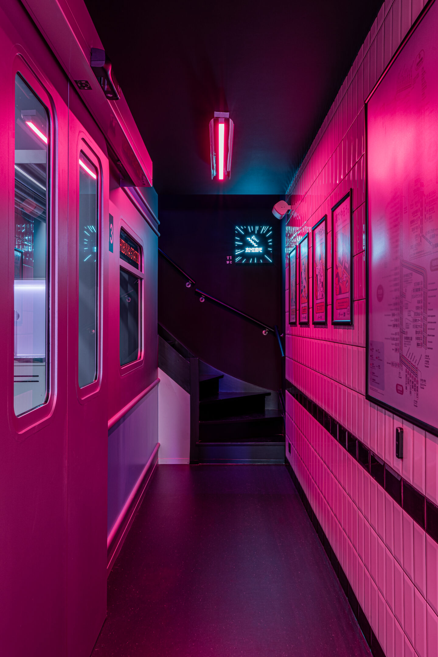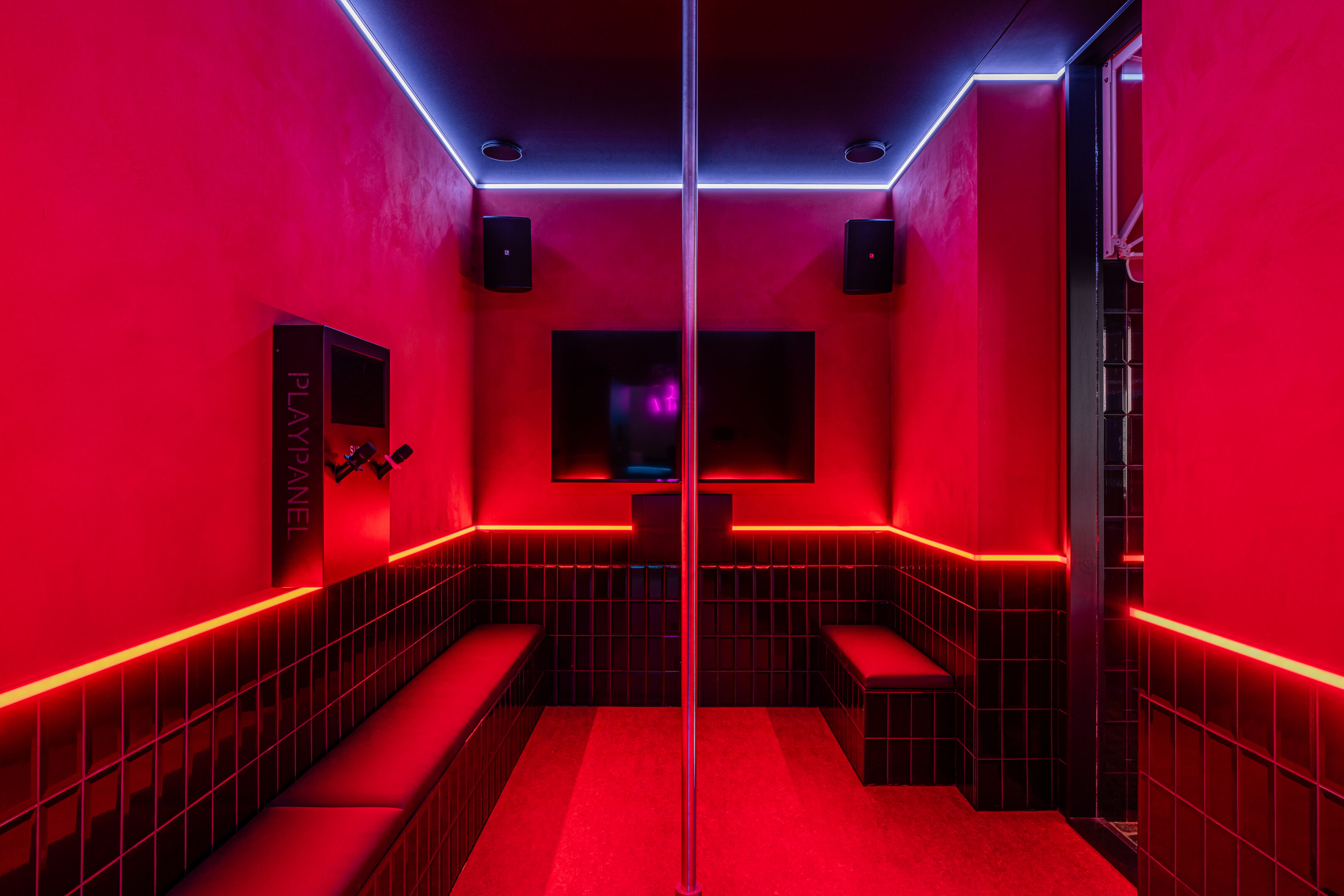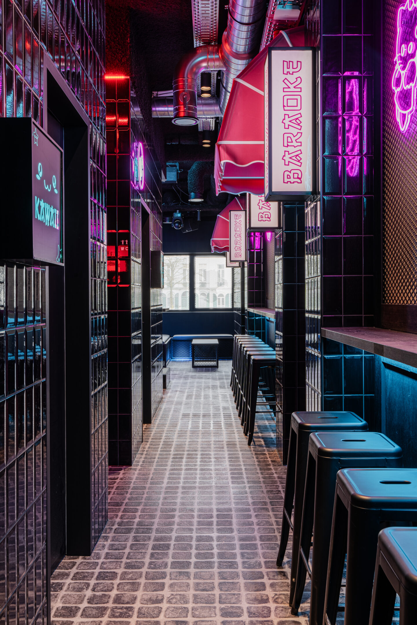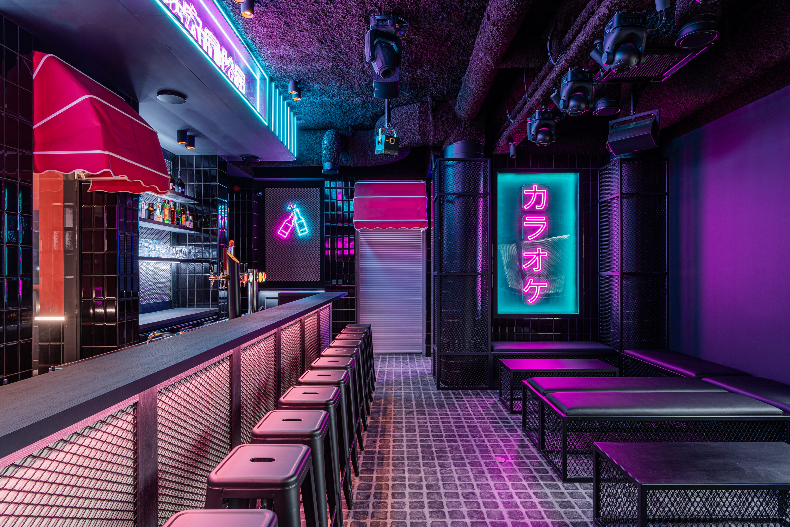 De verlichting speelt een centrale rol in de totale beleving van deze karaokebar en begeleidt bezoekers van de bar tot de thematische karaokeruimtes. Door een zorgvuldig samenspel van accenten, kleur en lichtintensiteit sluit het licht naadloos aan bij het interieur en draagt het bij aan een intense, maar gebalanceerde sfeerbeleving.