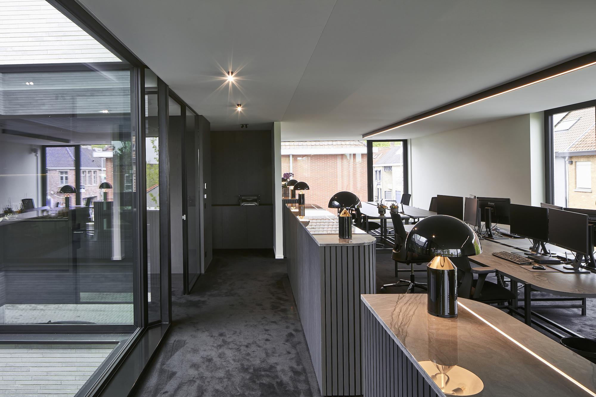 Een verfijnd lichtconcept dat de kantoorinrichting van Persona Accountants in Moorsele versterkt.