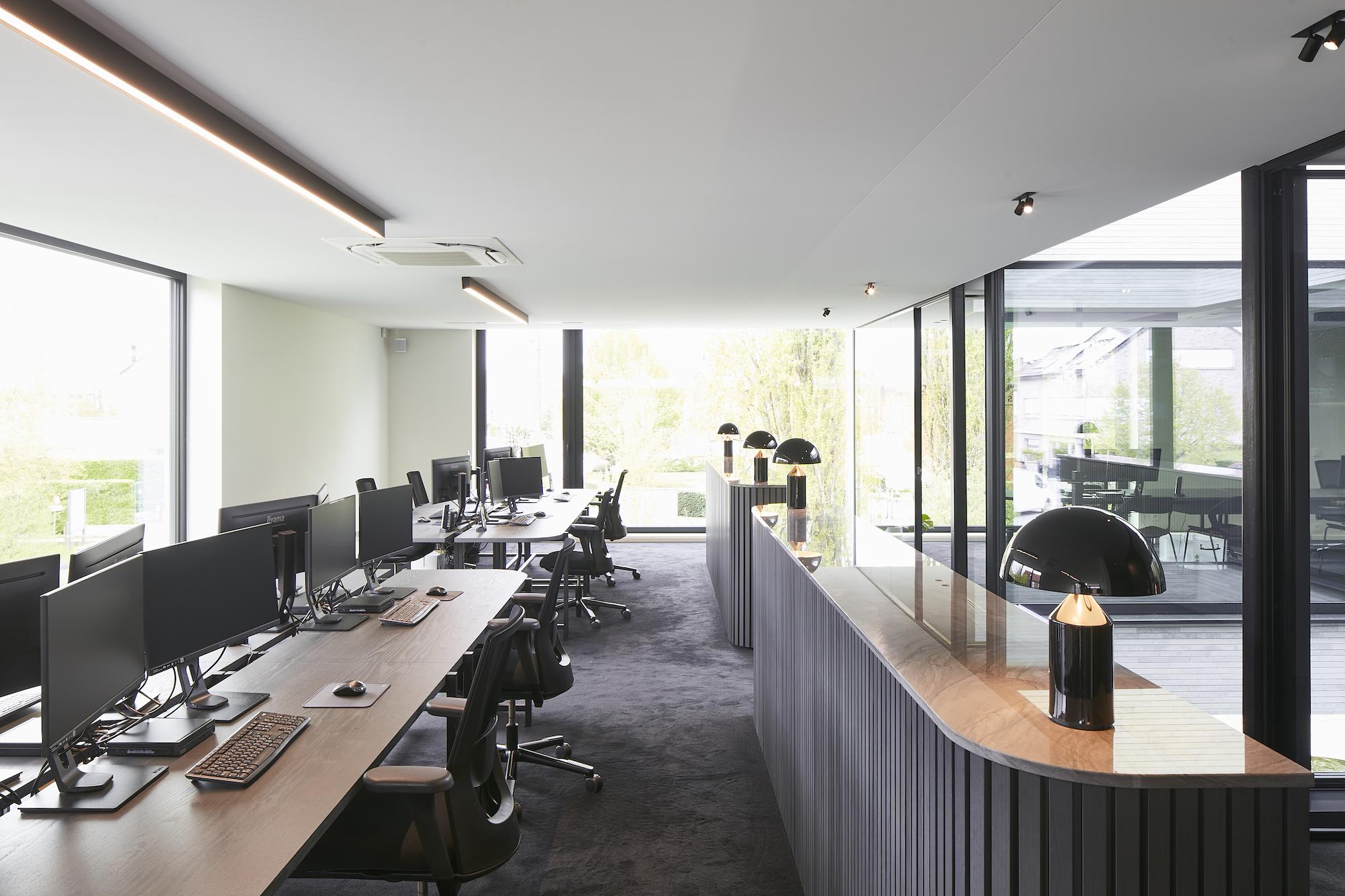 De verlichting ondersteunt zowel de dagelijkse werking als de beleving voor medewerkers en bezoekers. Door een evenwichtige combinatie van functioneel en sfeervol licht sluit het lichtconcept naadloos aan bij het interieur en draagt het bij aan een professionele, comfortabele werkomgeving.